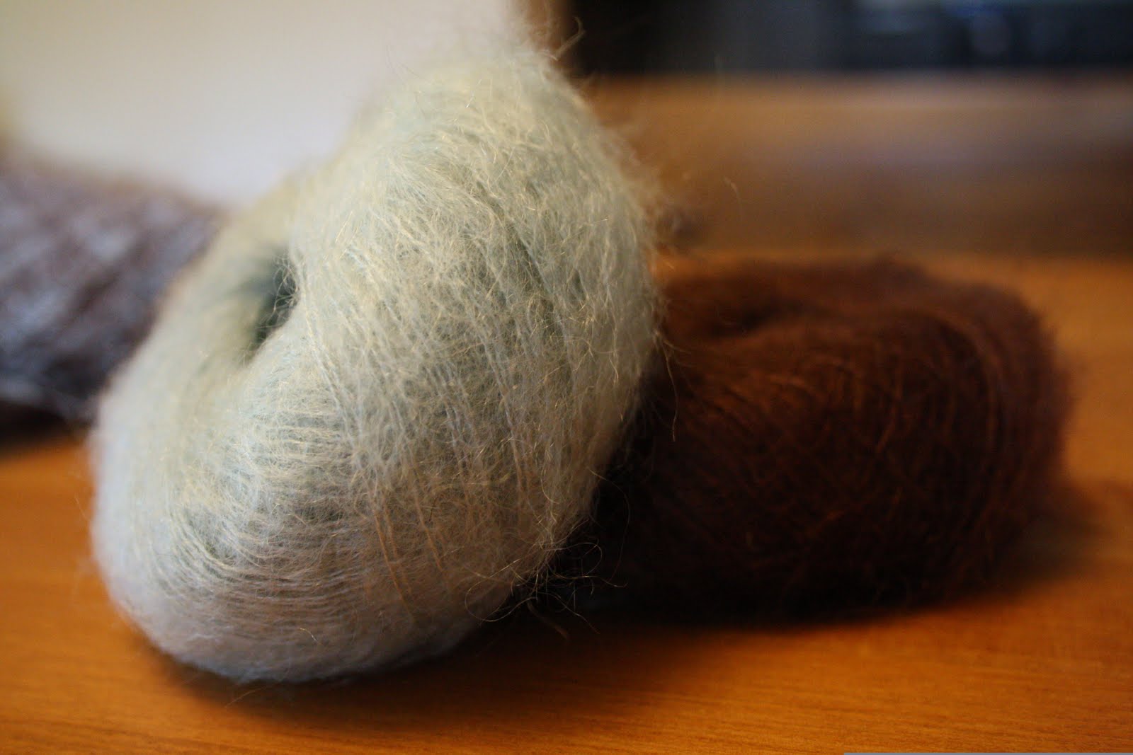 I am one of those people that is always cold, ideal for a knitter really. I hate to be chilled at the neck so I never leave the house without my scarf, in fact, I wear my scarf in the house as well... I even wear it when I'm baking or doing dishes, tucked underneath my apron. All of my scarves are really long and bulky (besides the Mustard Scarf) and with the weather warming up I really wanted to design a light scarf for spring. I took myself to the Beehive armed with my gift certificate I'd been hoarding since Christmas and picked out two delicious balls of Rowan's Kidsilk Haze. One is powdery blue in colour and the other a chocolate brown. I've never knit with this yarn before which is surprising because it's all my mother ever knits with, I am really enjoying myself and the scarf is going to be so light and airy yet warm and cozy!
