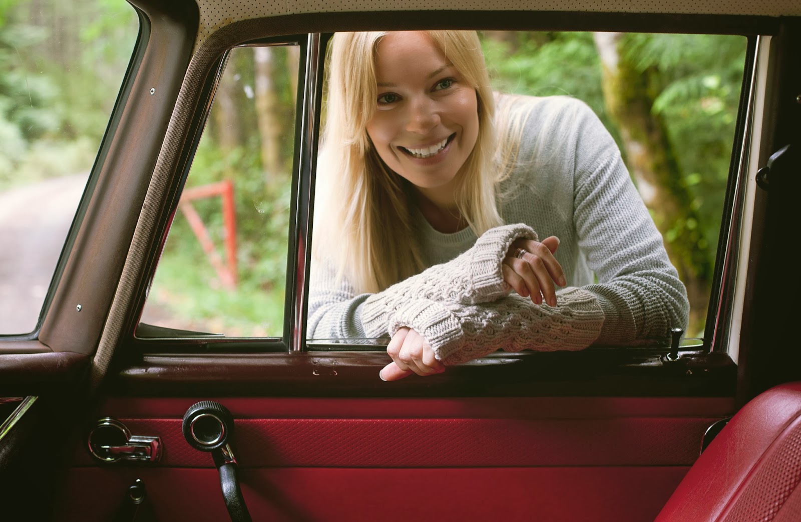 I designed these fingerless mitts with a thumb opening rather than a gusset to eliminate bulk, I believe its more flattering as well. Extra length is knit to cover the hand so that the ribbed cuff at the fingers can be worn flipped up for added warmth or folded over.