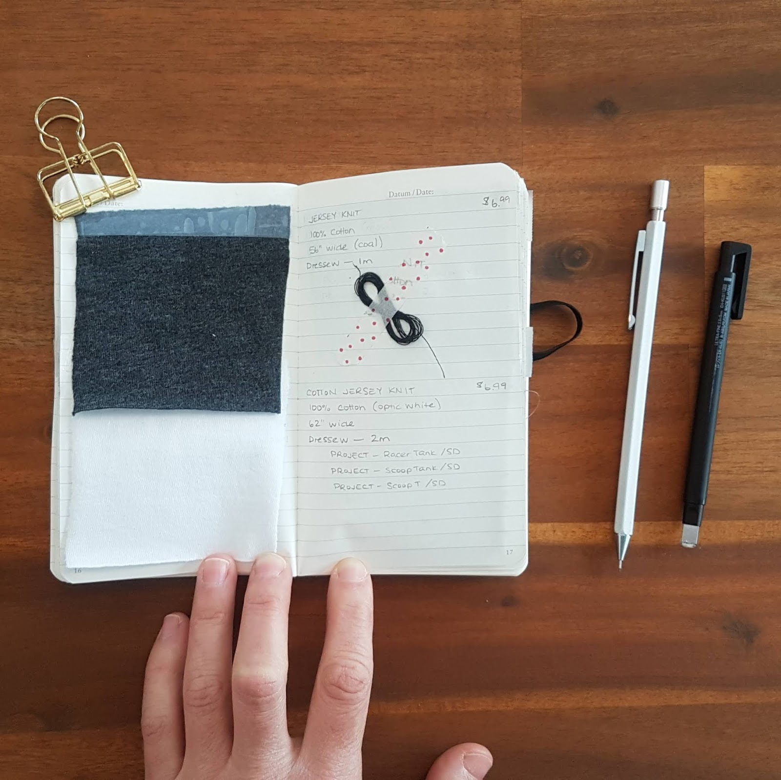A few years ago I began sewing my own clothes. I never really realized how much that sewing had amounted to until I was reorganizing my fabric swatch book (below) and thought to add finished projects to my notes to give each swatch a little more context. I thought I could fill this in from memory because who can't remember all of the things they've hand made?? Only a few things came to mind until I started pulling things out of drawers and off of hangers — by the end I had a massive pile of me-made clothes on the bed and very little left in my drawers (most of which doesn't really get worn since I started sewing for myself)!!!